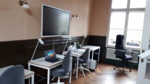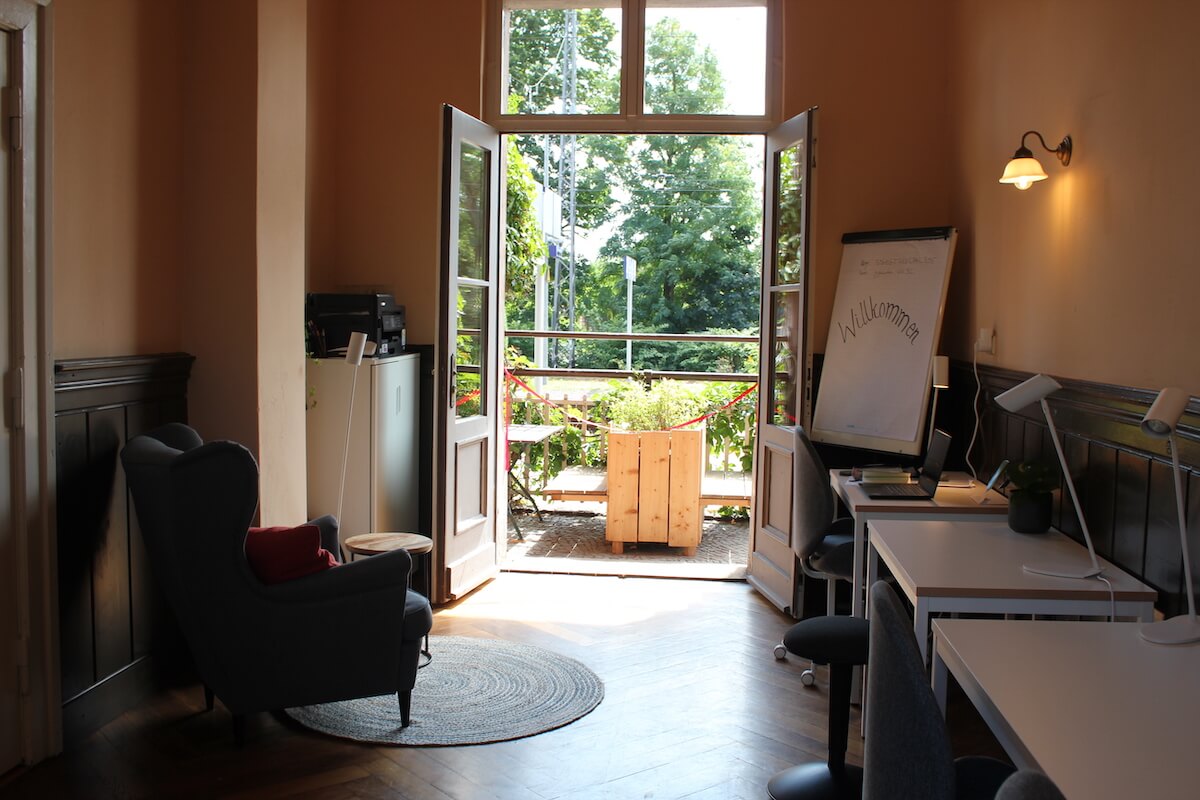 Der Coworking Space „GLEIS 21“ am Bahnhof Wiesenburg/Mark bietet Platz für bis zu fünf Personen. Er kann von einzelnen Coworker:innen sowie von kleineren Teams für Teamtage und Workshops genutzt werden. Zur Ausstattung gehören neben süßen Snacks und Kaffeemaschine auch ein Multifunktionsdrucker, ein internetfähiges Smartboard, Büro- und Moderationsmaterial.